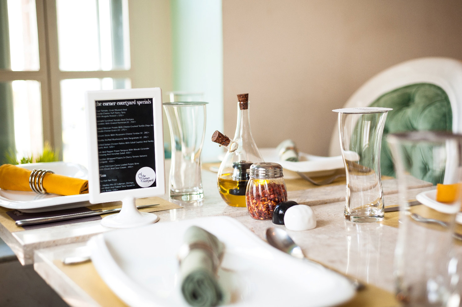 The ancient house, brimming with its colonial past since it was last inhabited in 1904, witnessed redemption after over a century. Like a long waiting lover it yielded itself to become into a new form, a new life, a new identity, a new name, The Corner Courtyard. Always been there at the corner, extending forever a longing courtyard, the house gave itself to the loving and caring touch of the passionate team that decorated it with a new status and name. The journey from a relic that reeked with an overwhelming past to a boutique hotel and a restaurant with an exquisite patisserie restored its glory. The Corner Courtyard has its ideological spring in the same colonial enterprise of which it is an unrelenting symbol. When the British came to India, the voyage was embarked for spices, a luxury unique to India. What emerged from this waltz of flavors and myriad colors was the emergence of an experience that was culturally immersive and adaptive. The blending of curries and cheeses offered the world with exquisite tastes. Here in Calcutta, the heart of Colonial India, the repartee of cultures and ethnicities seasoned the city into distinct flavors.